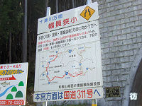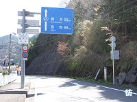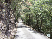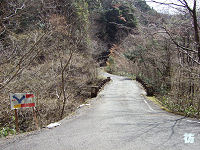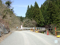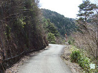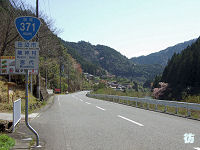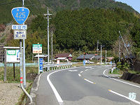 小又川トンネルを出ると日高川支流の小又川を渡る。橋の東詰で川沿いに進む狭路の旧道と合流すると、1〜狭い2車線道で川沿いを2kmほど進んで龍神村小又川地区の集落に至る。この集落が和歌山県側最後の集落となる。 集落内を平坦な1.5〜狭い2車線道で進んで行く。カーブに設置されているミラーの支柱には『転落 死亡事故多し』という標識が取り付けられている。この標識はこの先にも何枚か設置されているが、紀伊半島の3ケタ国道ではR425でしか見ていない。日本有数の悪路国道であることを物語る標識である。 広狭混在の道を400mほど進むと小さな川を渡る橋に至る。西詰には小又川トンネル前にあったのと同じ標識が設置されており、『転落死亡事故多発』という警告看板も設置されている。橋を渡ると荒れた1車線狭路が延々と続く悪路区間となるので、走行に不安があるのであれば引き返すことをお勧めする。なお、この付近にある民家が和歌山県側最後の民家となり、この先約20kmは民家はない。 |
