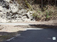 林道中の河線分岐点を過ぎてから少し進むと、狭路坂道となり少しづつ標高を上げて川沿いから離れる。見通しの悪いカーブをいくつかクリアしながら進み、林道分岐点から2kmほど進むと家屋が現れる。小又川集落と県境の間にある唯一の家屋なのだが、作業小屋のような家屋で人家ではないようだ。 家屋を過ぎてからも山中を進む。悪路らしく(?)、見通しの悪い急カーブなどには、『転落 死亡事故』と書かれた標識が取り付けられたカーブミラーが設置されている。過去に転落事故が起きたことがあるのだろうか。事故が起きても気付いてもらうのは困難だろう。 しばらく進むと断崖下を進んで行くようになる。アップダウンのある狭路を淡々と進んで行くと、やや広い道幅となり、林道猪笹線分岐点に到着する。林道中の河線分岐点から約5kmである。 |