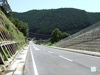 R425は龍神村福井の大正橋西詰で単独分岐すると、そのまま整備された2車線道となって進んで行く。大正橋東詰から先は平成22年(2010年)8月28日に供用開始となったR425福井バイパス区間。全区間(L=2.44km)のうち、R424との重複区間〜大正橋東詰までの約500mは供用済みだったため、残る約1.9kmが供用された。この区間も内陸部骨格道路(X軸ネットワーク)の一部として整備された区間で、平成15年(2003年)度に事業着手されていた。開通するまではR424手谷橋南詰で分岐して、蛇行する日高川に沿ってS字を描くようにして進んでいたが、バイパス全通で距離と走行時間は大幅に短縮されている。 大正橋東詰の信号機のある交差点を過ぎると下福井トンネルに入る。ほぼ直線のトンネルを抜けると、そのまま整備された見通しの良い2車線道を進み、R425旧道と日高川を祇園橋で渡る。祇園橋を渡ると今度は上福井橋(L=660m)を通り抜け、龍神村柳瀬地区に入り、日高川沿いを進んで来る旧道との交差点に至る。 交差点を過ぎると日高川を渡って六地蔵トンネル(L=442m)を通り抜け、2車線坂道を上るとr29(県道田辺龍神線)との交差点に至る。r29交差点からは日高川右岸に沿って平坦な2車線道で進んで行く。川の流れに沿って進むためにウネウネと曲がりながら進むのだが、整備されて見通しの良い道路が続くので快走できる。 六地蔵トンネルから5kmほど進むと、龍神村西地区の町中に入り、やがて上山路橋西詰のR371との交差点に到着する。 |