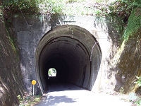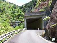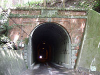 矢所橋を渡った南詰で林道口窄線が分岐している。ダムの名前の由来となった口窄谷沿いに進む林道だ。林道分岐点となる矢所橋南詰を左に向かうと又口川に沿って進むが、しばらくすると又口川から離れて支流に沿って進んで行く。やがてその支流からはも離れ、鬱蒼とした深い山中を進んで行く。r760交差点から2.5kmほど進むと、重厚なレンガ造りの坂下隧道に到着する。 R425のトンネルとなっている現在の坂下隧道は明治44年(1911年)8月に竣工した二代目隧道。平成23年(2011年)夏で竣工100年を迎えることになる。総延長約333mのトンネルだが、幅は1車線ほどしかないためトンネル内でのすれ違いは不可能となっている。ここまでのトンネルとは違い、トンネル内部には照明が設置されているが、これは距離が長いのとゴミ収集車などが頻繁に通るからだろう。ちなみに初代坂下隧道は明治33年(1900年)に竣工したものの、尾鷲側の地質が脆く頻繁に道路崩壊したため、竣工11年後にして廃棄されている。初代隧道も現存しているが、@管理人は今だに訪れていない。 坂下隧道を出ると深い山中に出て狭路坂道を下って行く。尾鷲市街まで数kmなのだが、これから山奥に向かうような道路状況になる。坂下隧道を出るとすぐにもう一つトンネルをこえる。坂場トンネルというトンネルだが、こちらは昭和33年(1959年)3月竣工と、坂下隧道以外のトンネルと同時期につくられている。ダム建設による資材運搬などで建設されたのだろう。 坂場トンネルを出ると急なヘアピンカーブを曲がり、先ほど走った道を見上げながら一気に下って行く。しばらく見通しの悪い急カーブが連続する狭路坂道を下って行く。坂下隧道から900mほど進むと尾鷲市街地が見えるようになり、やっと町に下りてきたこととR425も終わりに近いことを実感できるようになる。 |