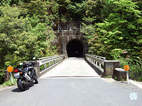 ■概況 R425の奈良県内区間がダムによる貯水池沿いを走り続けるのに対して、三重県内区間は深い山中を行く3ケタ国道らしい狭路山道となっています。山奥を進む区間ですが、和歌山県〜奈良県間(R371〜R168間)とは違い、路面状態は良好でガードレールも設置されており、気分的に楽に走ることが出来ます。沿道にゴミ焼却場があることから、道路の整備はしっかり行われているようです。 平成23年(2011年)夏には坂下隧道が竣工100周年を迎えます。明治44年(1911年)に竣工して以来100年を経過した隧道が、国道トンネルとして現役というのはR425坂下隧道ぐらいではないでしょうか。今のところ新トンネルを建設するという計画はないようですが、いずれは代替トンネルが建設されるか大改修される可能性があります。当分の間は現役隧道として使用されることになるので、明治隧道らしい重厚なレンガ造りの隧道を通り抜けることができます。 尾鷲市内では紀勢自動車道が新直轄方式で建設中で、平成23年(2011年)度中に紀伊長島IC〜尾鷲北IC間が部分供用となる予定となっています。尾鷲北ICはR425に接続するとのことで、R42から尾鷲北ICへのアクセス道路が建設されています。その関係で尾鷲市街区間は整備改良が進んでおり、いずれは整備された2車線道となると思われます。 ■交通量など 三重県内区間には尾鷲市街を除けば人が住んでいる集落はなく、事実上無人地帯を走ることになります。そのわりには交通量は多いのがこの区間の特徴で、通行する車輌の多くがゴミ収集車です。ゴミ焼却場から西、県境の区間になると交通量は皆無となります。 ゴミ収集車は走り慣れていることもあり、意外と速度を出している車も見かけました。また大型の運搬車も通行しているようなので、通行時は対向車に要注意です。 ■ガソリンスタンド ありません。 ■アドバイス 基本的に無人地帯を走ります。見通しの悪い区間も多いので、運転初心者の方は複数人か複数台で行かれることをお勧めします。 沿道には自販機が1台だけありましたが、稼働しているかどうかは不明です。商店などないので、自転車で行かれる場合は飲料水や食料は事前に購入しておくことをお勧めします。また尾鷲市街以外に人が住む集落はなく、人がいるとすれば途中にあるゴミ焼却場だけとなります。 公衆電話もなく携帯電話の電波も入りずらい地帯なので、何かあった場合の連絡方法がないので、バイク・車であれ自転車であれ、できるなら複数人で行かれるのがよいでしょう。 ■注意点 大雨や台風襲来の悪天候時、大雨の後などは土砂崩れなどの恐れがあるので走らない方がよいでしょう。通行情報を確認してから訪れることをお勧めします。 冬期は路面凍結・積雪のある地帯ですが、通行規制はないようです。通行できても路面状態には十分注意してください。 |