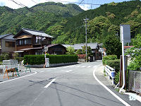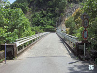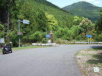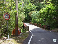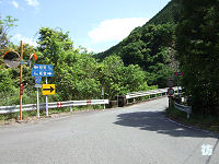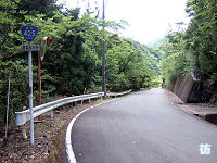 県境を過ぎると三重県尾鷲市に入る。尾鷲市といっても深い山中で、奈良県内のダム湖沿いを行く区間とは違い、古川沿いの谷間を行く。見通しの悪いカーブが続くがアップダウンは少なく走りやすい道が続く。 古川沿いを進む狭路を2kmほど進むと林道川原小屋線が分岐する八幡橋西詰に至る。R425は橋を渡って八幡トンネルに入る。橋とトンネルの銘板を見てみると、両方とも昭和33年(1958年)9月に竣工したようで、ダム建設絡みで建設された道路であることが分かる。 八幡橋で古川を渡り八幡トンネルを出ると、R425は山の斜面を急勾配・急カーブが連続する見通しの悪い狭路坂道となって下って行く。八幡トンネル西側の区間とは違って急坂が続くことになる。ウネウネと曲がりながら標高を下げる急坂を2kmほど進むと谷間に入る。さらに1kmほど進むと橋を渡って又口川沿いの深い谷間を進む狭路になる。谷間を行く典型的な狭路の3ケタ国道である。 平坦な1〜1.5車線道が断続する谷間の狭路を3kmほど進むと道幅が広がり2車線道になり、又口の集落にる柳ノ谷林道分岐点に到着する。県境から約9kmである。 |