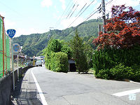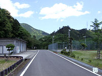 尾鷲第一発電所前からはセンターラインのない2車線道となってクチスボ貯水池沿いを進んで行く。道は湖岸から少し離れた所を進むので、ダム湖を見ながら進むことはない。クチスボダム近くでようやくダム湖を見ることが出来るぐらいだ。見通しの良い道をしばらく進むと、倉庫か車庫のような施設が見えてくる。その向かい側にはテニスコートがあった。周囲に集落や観光スポットもない所にテニスコートがあるのか不思議である。 発電所前から1kmほど進むとクチスボダムに至る。このダムは横を通り抜けるだけで、ダム横付近からはクチスボ貯水池を見ることが出来る。ちなみにクチスボは『口窄』と書く。ダムを過ぎると緩やかな勾配の坂道を下り、ダム横から500mほどでr760(県道南浦海山線)との交差点となる矢所橋北詰に至る。 |