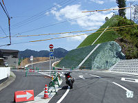 1.5車線急坂を下って行くと、突然山中から抜けて町中へと至る。建設中の紀勢自動車道を過ぎると狭路を坂道を下り、急カーブを曲がると尾鷲市坂場西町の町中に入る。奈良県吉野郡下北山村のR169交差点から走って来た場合、初めて入る町であり、逆方向だと最後の町ということになる。 R425は町中を行く生活道路となり、町中を200mほど進むと『一方通行』規制のある道路との交差点に至る。ここからR42交差点までの間は、起点→終点(R42→クチスボダム方向)の一方通行規制が行われているため、終点→起点(クチスボダム→R42)方向で来た場合は迂回しなくてはならない。ただこれは四輪車のみの規制であり、二輪車は通行できる。 交差点付近はR42から紀勢自動車道尾鷲北ICへのアクセス道路が建設中で、大きく姿が変わってしまっている。自動車道が開通すれば、現在建設中のアクセス道路がR425となり、一方通行規制のある狭路は国道指定を解除される可能性がある。R425唯一の一方通行区間を走ることが出来るのはあと少しだけということになる。 その一方通行区間は町中を行く1車線狭路道。バイクで走ったが2〜3台の車とすれ違った。交通量が多く離合困難なため規制されたのだろう。一通区間を400mほど進むと、R425起点であるR42との坂場交差点に到着する。県境から約20km、奈良県吉野郡下北山村のR169交差点から約45kmである。 |